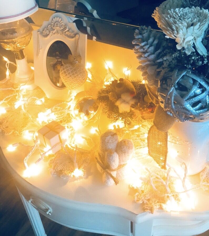 玄関口のテーブルをクリスマス仕様にちょっとだけ飾って、、