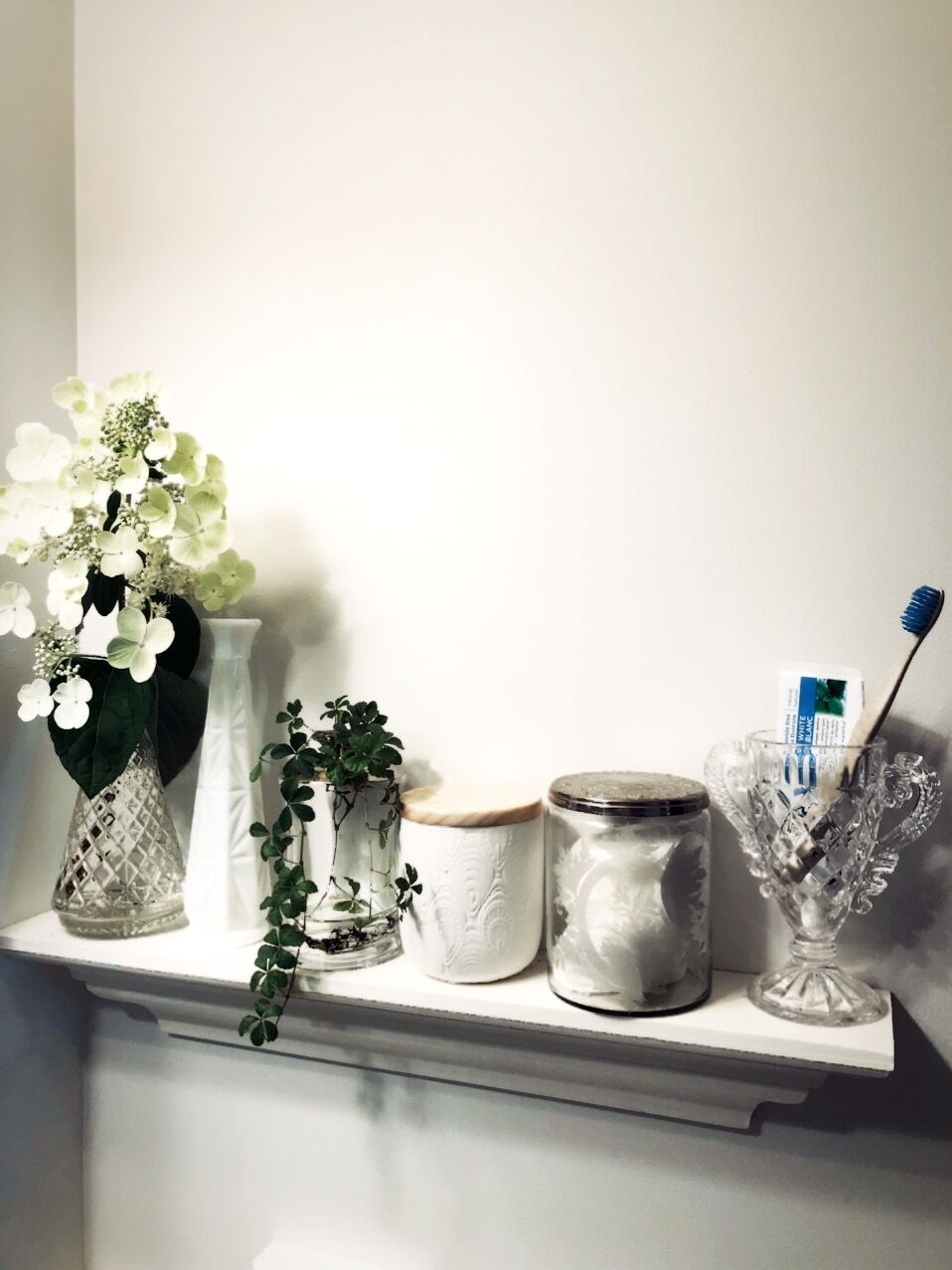これは、我が家のバスルームの壁に付けた棚の写真です。