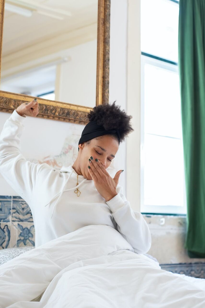 ”寝込む事なく、元気に動き回れている” または単純に睡眠から覚めて起きた状態を表現するのにも使われますので、ふたつの意味があるようです。