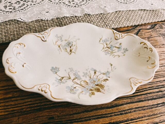 私が持っているミーキン社の陶器は、Trinket Dishと言って、いわゆる小物を置く、”アクセサリー皿”です。水色が好きなので、お店で見つけた時から今に至るまでずっと魅了されっぱなしです。