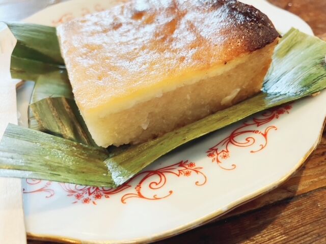 材料はカサバというお芋をすりおろしたものに、ココナツミルクや米粉を混ぜ合わせたもの、との事。